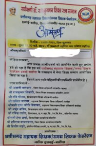 जांजगीर-चांपा। शिक्षा को सर्वोच्च प्राथमिकता बताने वाला शासन अब खुद दोहरे मापदंड अपनाने में जुटा है। एक ओर पूरे छत्तीसगढ़ में शासन ने शिक्षकों के प्रशिक्षण कार्यक्रमों पर रोक लगा दी थी, यह कहते हुए कि प्रशिक्षण में शिक्षकों के जाने से बच्चों की पढ़ाई बाधित होती है। वहीं दूसरी ओर आगामी 19 सितम्बर को छत्तीसगढ़ सहायक शिक्षक/समग्र शिक्षक फेडरेशन इकाई-बलोदा के तत्वावधान में माँ अन्नधरी पहरिया पाठ प्रांगण पहरिया में आयोजित होने वाले समारोह में स्वयं जिला शिक्षा अधिकारी (डीईओ) को अतिथि बनाकर बुलाया जा रहा है।