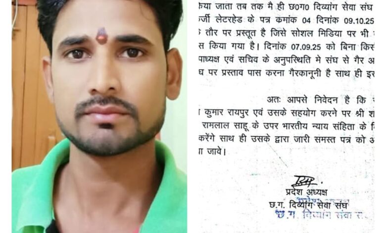 पंडरिया। छत्तीसगढ़ दिव्यांग सेवा संघ के नाम पर जारी एक पत्र (क्रमांक/पत्र/232 दिनांक 11.10.2025) ने पूरे प्रदेश के दिव्यांगजनों और संघ के सदस्यों के बीच नई बहस छेड़ दी है। पत्र पर हस्ताक्षर तो प्रदेश अध्यक्ष बोहितराम चंद्राकर के हैं, पर भाषा, भाव और बयानबाज़ी देखकर अब यह सवाल उठ खड़ा हुआ है कि — “क्या यह पत्र वाकई बोहितराम ने लिखा या किसी ने उनके नाम से लिखवाया?”