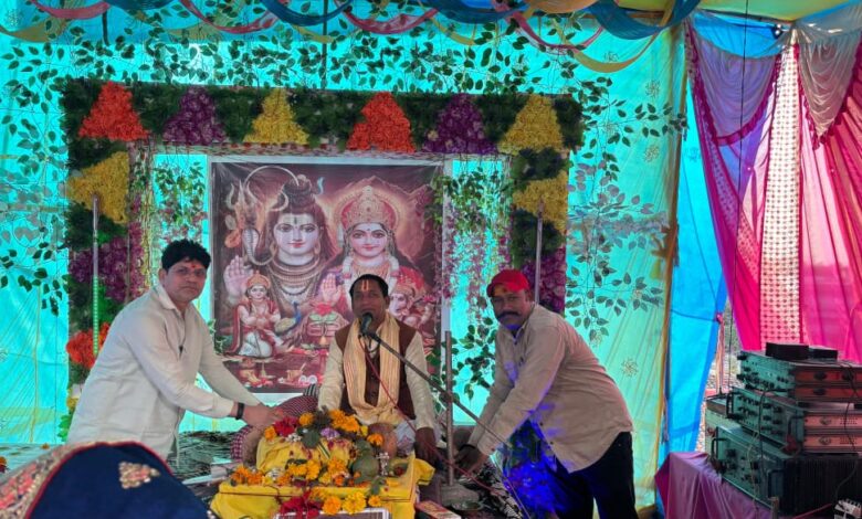 महंत में शिव महापुराण कथा ज्ञान यज्ञ व रुद्राभिषेक में पहुंचे जिला पंचायत सभापति, व्यासपीठ से लिया आशीर्वाद