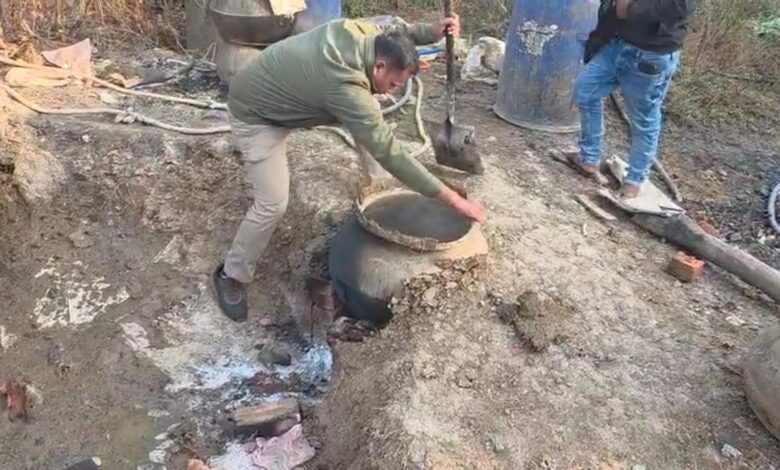 छापेमारी में 300 लीटर अवैध शराब बरामद, 8 ट्रम में रखा महुआ लहान मौके पर नष्ट, शराब निर्माण का बर्तन जप्त
