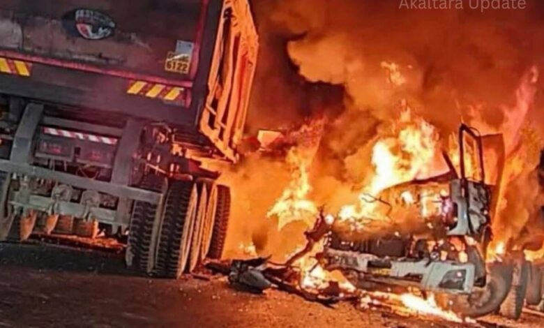 अकलतरा। छत्तीसगढ़ के जांजगीर-चांपा जिले के अकलतरा थाना क्षेत्र अंतर्गत अकलतरा–बलौदा मुख्य मार्ग पर रविवार तड़के एक भीषण सड़क दुर्घटना में एक चालक की घटनास्थल पर ही मौत हो गई, जबकि दूसरा चालक गंभीर रूप से घायल हो गया। कोटगढ़ के समीप सुबह करीब 5 बजे तीन भारी ट्रेलर आपस में टकरा गए, जिससे पूरा इलाका दहल उठा।